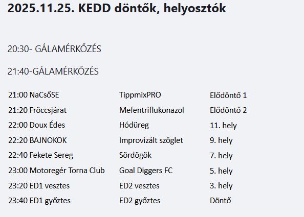 | 22:30 | Goal Diggers Fc | Fröccsjárat 1-4 |